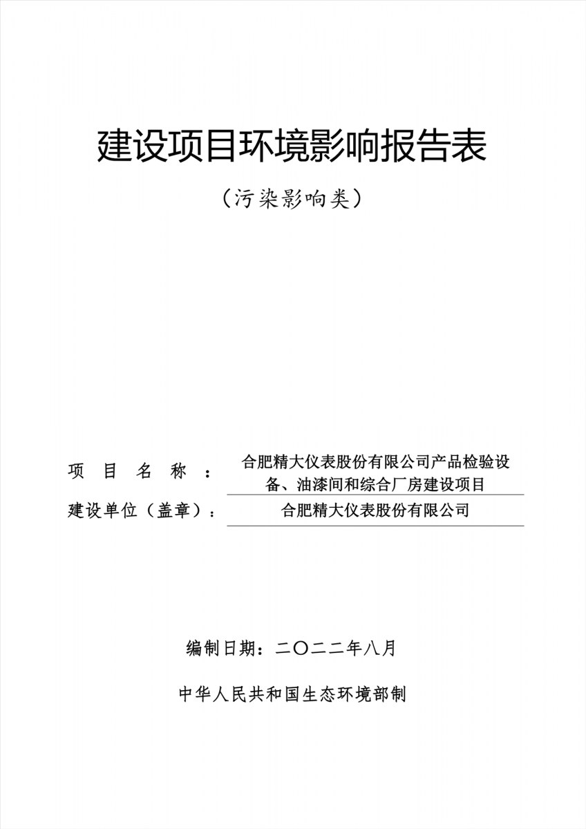 合肥精大儀表股份有限公司產(chǎn)品檢驗設備、油漆間和綜合廠房建設項目環(huán)境影響評價報告表公示