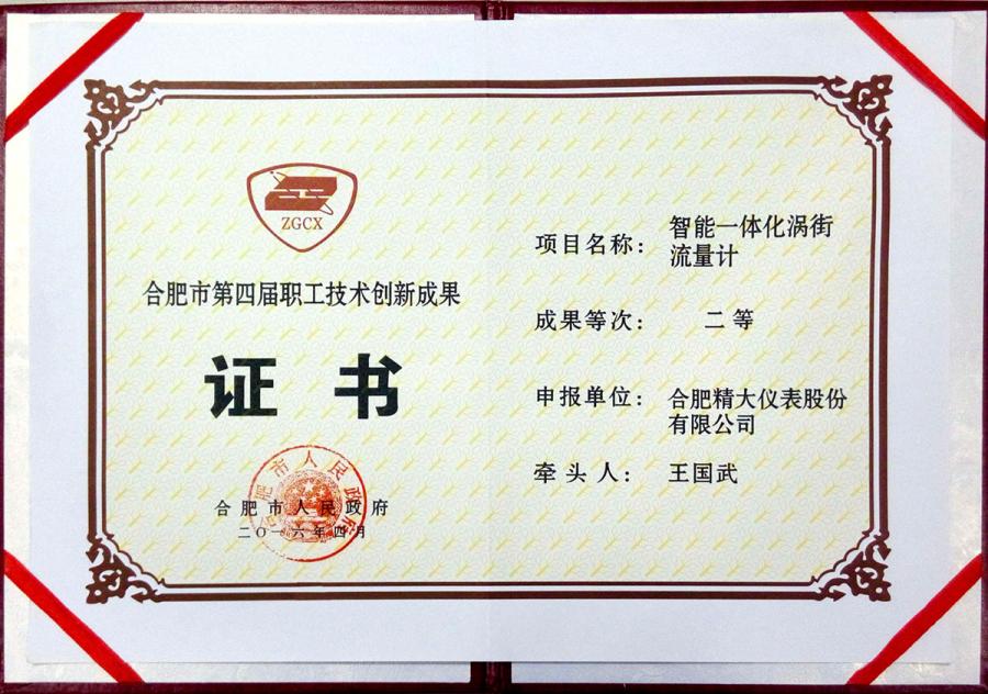 職工技術(shù)創(chuàng)新成果二等獎證書