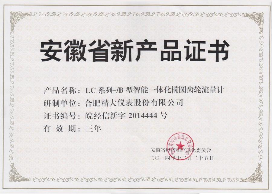 安徽省新產(chǎn)品證書(shū)(LC型)