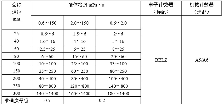 流量計(jì)一般按以下配置出廠,見(jiàn)下表中配套計(jì)數(shù)器型號(hào)及性能參數(shù)。